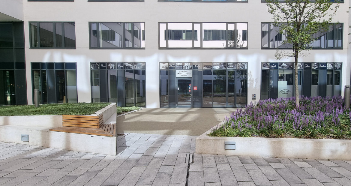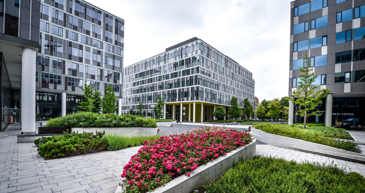 The Váci Greens office park building "D" is an exclusive A+ category office space located in the 13th district of Budapest, in the Váci Office Corridor, at the corner of Váci út and Fiastyúk utca, surrounded by a unique green environment. By diagonally cutting through the lower two floors of the building and opening up the inner courtyard in between, Building "D" provides a main access to the central square for those arriving from the subway. The resulting internal open atrium provides cafes and restaurants as amenities for those seeking refreshment.
